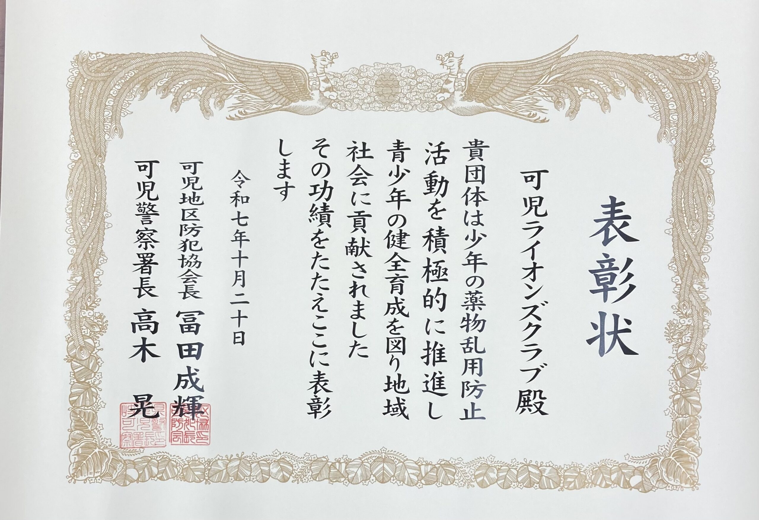 防犯功労賞表彰